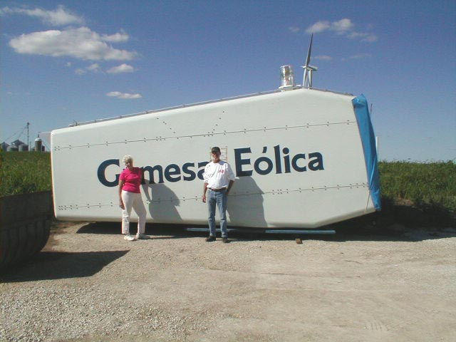 Mary Lou and Construction Supervisor Nooner beside a gearbox
